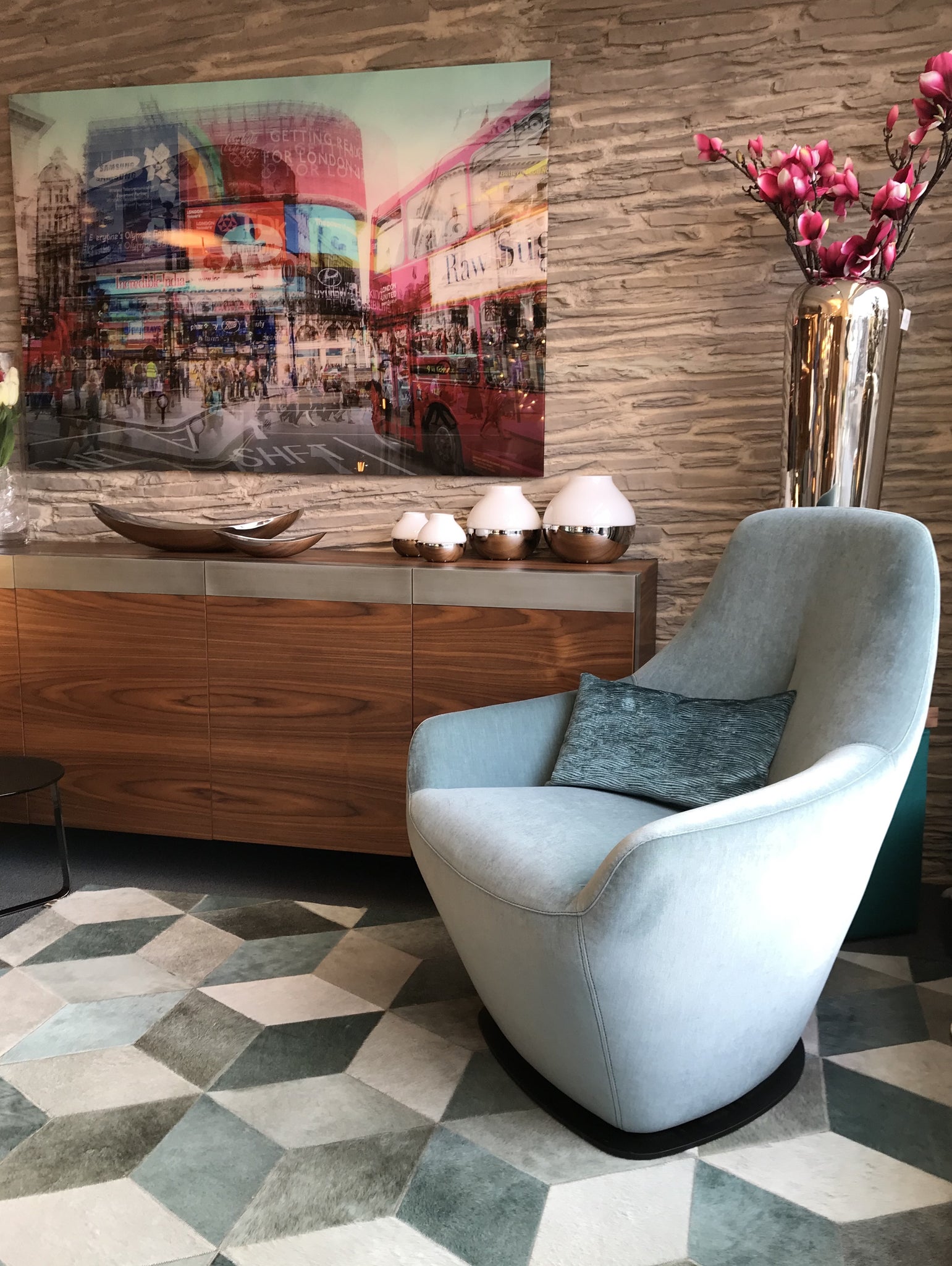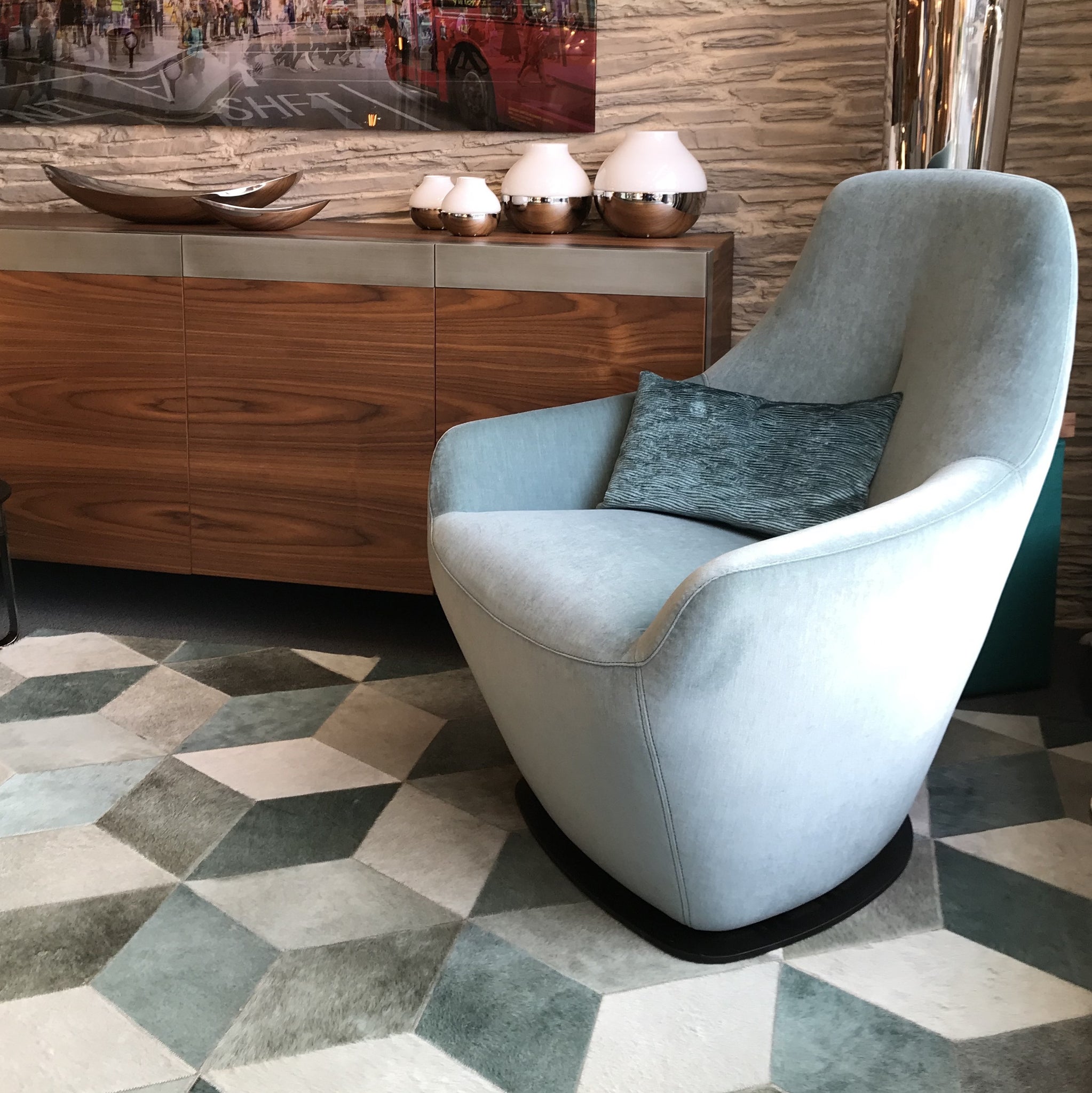 Leolux Cantate – Beistellsessel als Ausstellungsstück in Velours „Lucir 380 Jade“ (pastellblau)