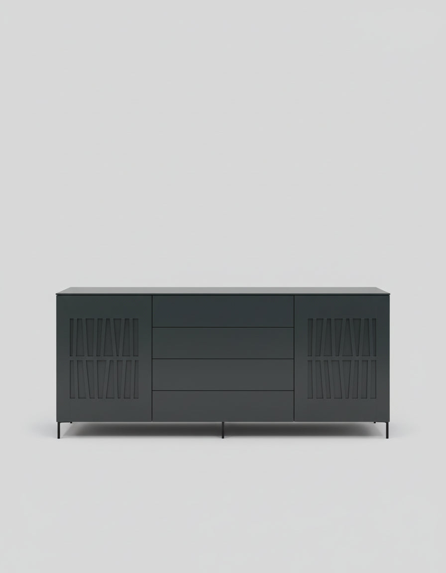 Sideboard Claire Lack anthrazit matt, B 189 cm, 2 Türen, 4 Schubkästen, Ausstellugnsstück