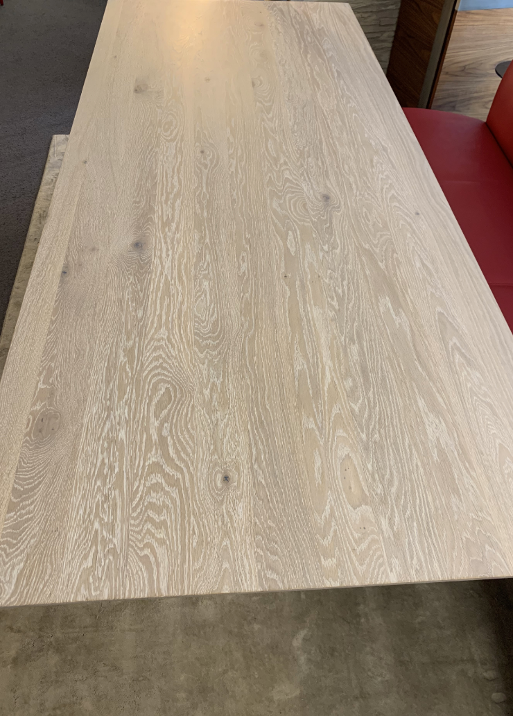 Platte: Eiche massiv, weiß geölt, Schweizer Kante