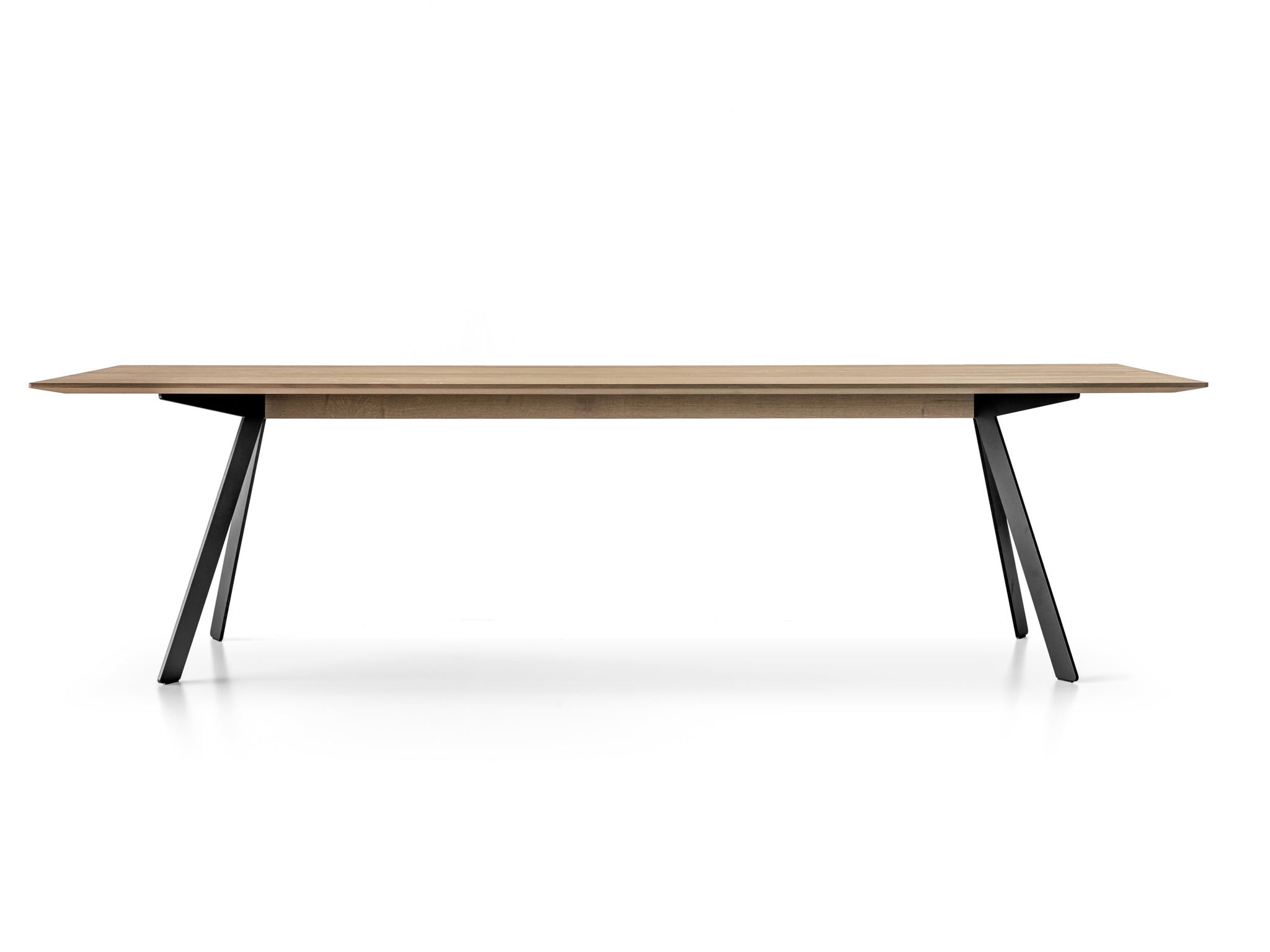 Girsberger Barra – Esstisch mit fester Platte | Massivholz Eiche astig geölt, Schweizer Kante, schwarzes Gestell
