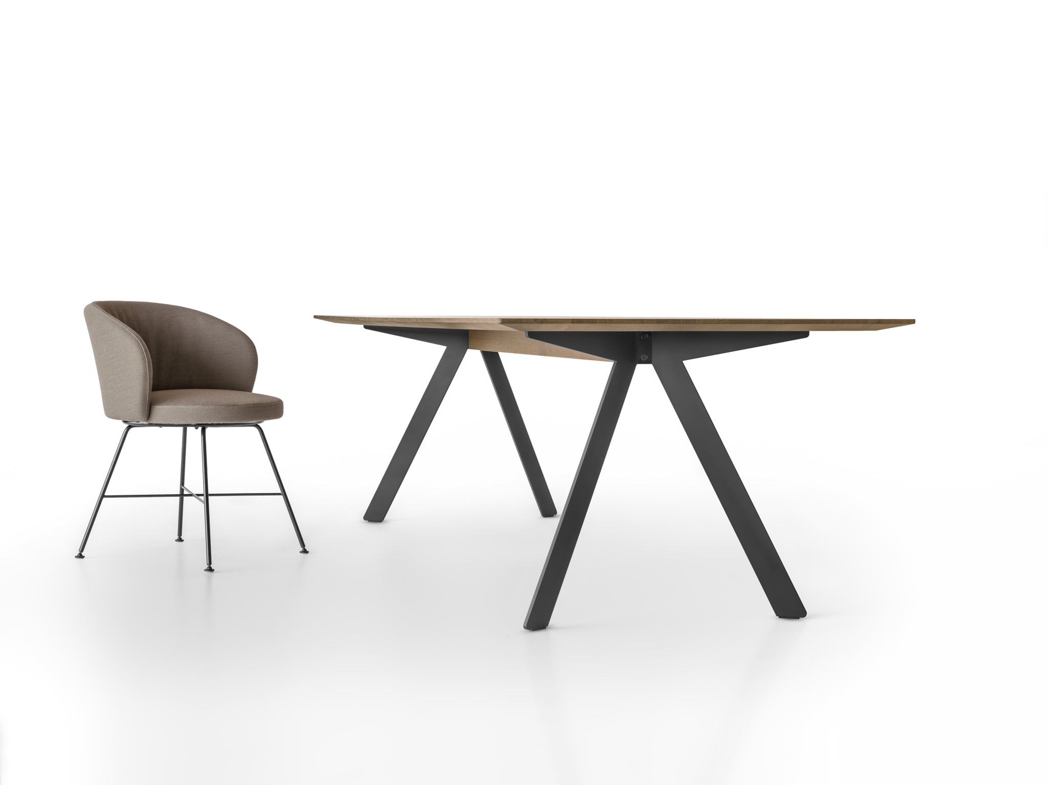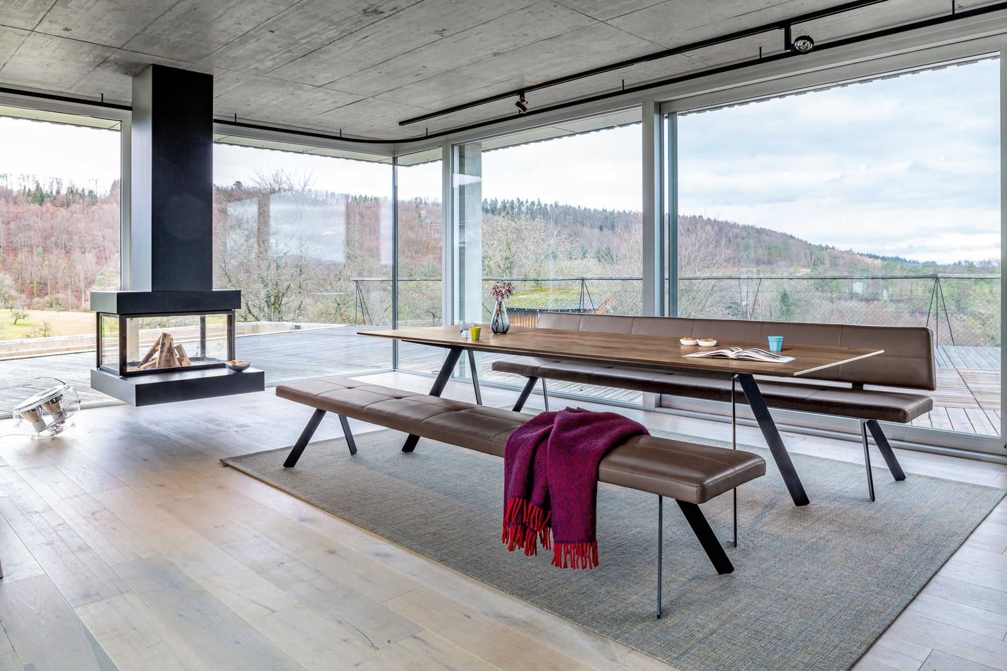 Reduziert im Ausdruck, stark in der Wirkung: Barra von Girsberger kombiniert eine charaktervolle Massivholzplatte aus astiger Eiche (geölt) mit einer markanten Schweizer Kante und einem schwarz pulverbeschichteten Gestell. Die leicht unterschnittene Platte wirkt filigran, die zentrale Trägerstruktur sorgt für hohe Stabilität – ein moderner Tisch für Küche, Essbereich und offene Wohnräume.