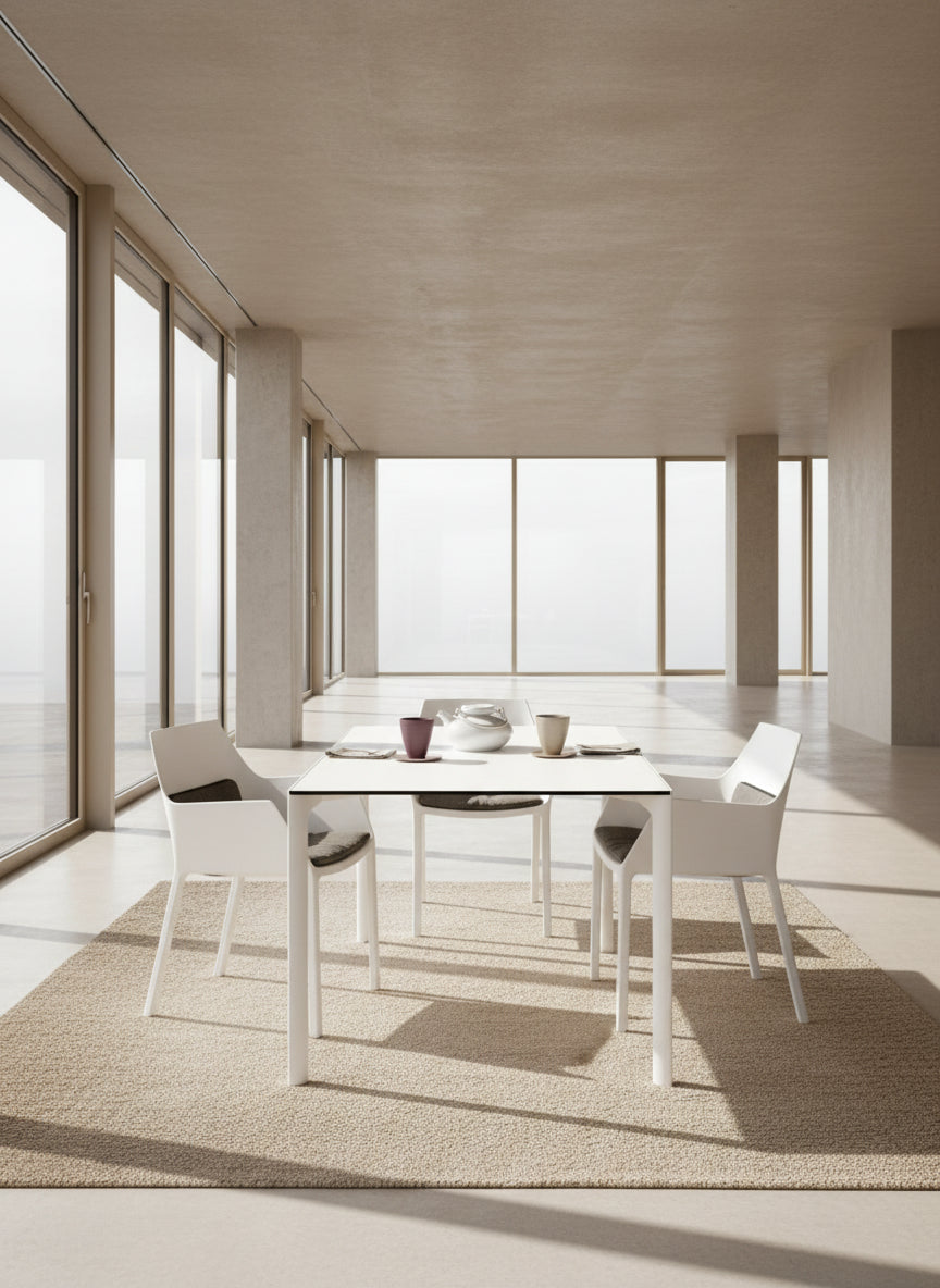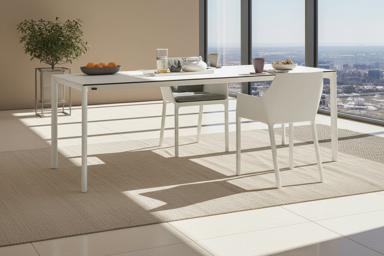 Sanft gerundete Profile, klare Linie, hohe Alltagstauglichkeit: Maki von Kristalia kombiniert eine schlanke Fenix-Platte mit lackierter Kante mit einem lackierten Aluminiumgestell. Die Oberfläche ist matt, soft-touch und antifingerprint – ideal für den täglichen Einsatz. Auf Wunsch lässt sich Maki als Ausziehtisch auf 256 cm oder 303 cm verlängern – perfekt für Gäste und flexible Grundrisse.
