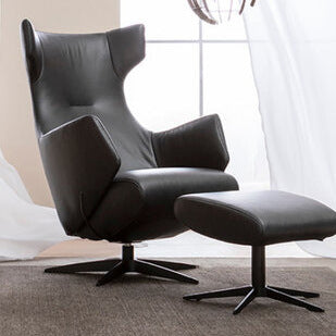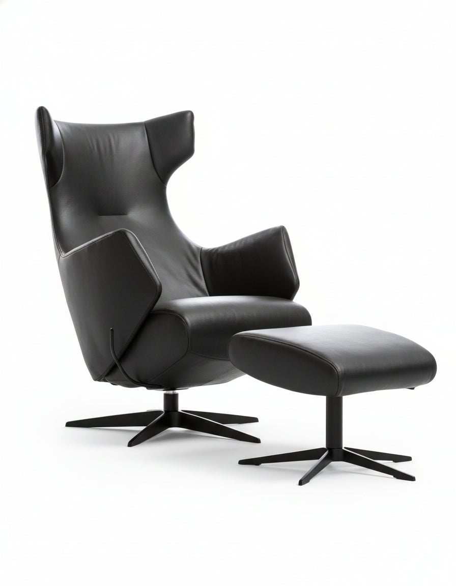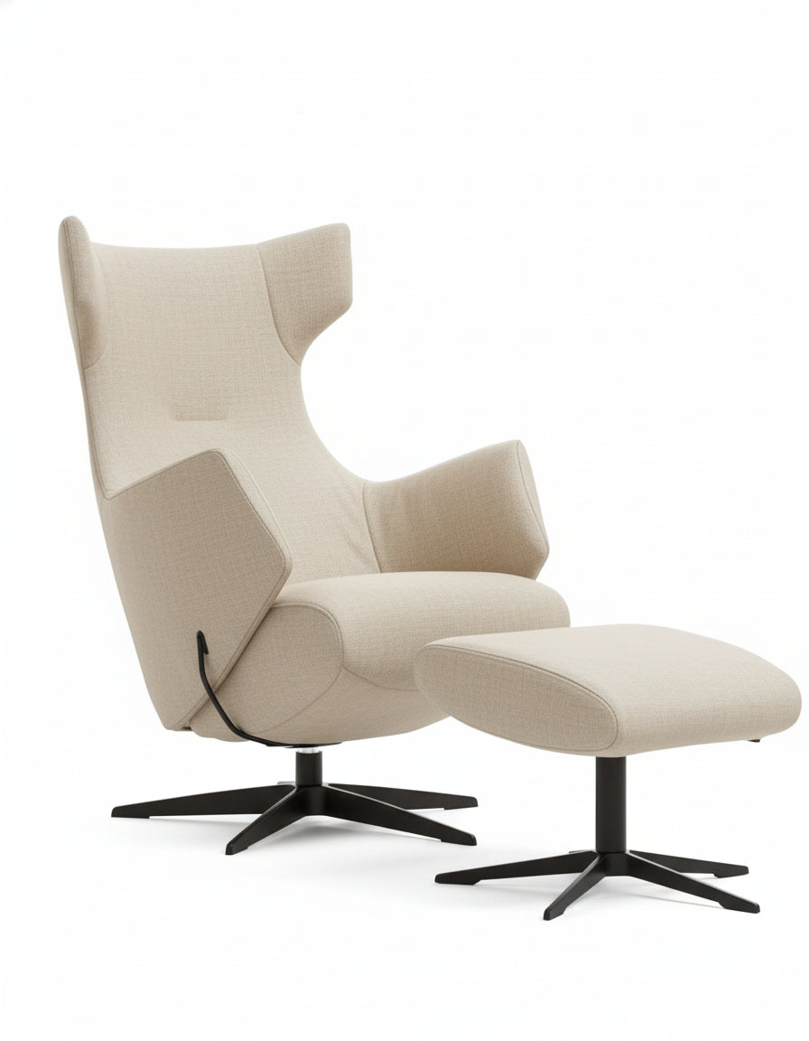 Puristisch, komfortabel, zuverlässig: Der AERA TR-1005 setzt auf manuelle Verstellung von Rücken und Kopfteil (Top-Swing) sowie einen standfesten Sternfuß „Fuß 32“ in Schwarz. Als eleganter Ohrensessel mit hohem Rücken bietet er ruhigen Halt und entspanntes Sitzen – wahlweise mit Hocker (auch ohne Hocker lieferbar).