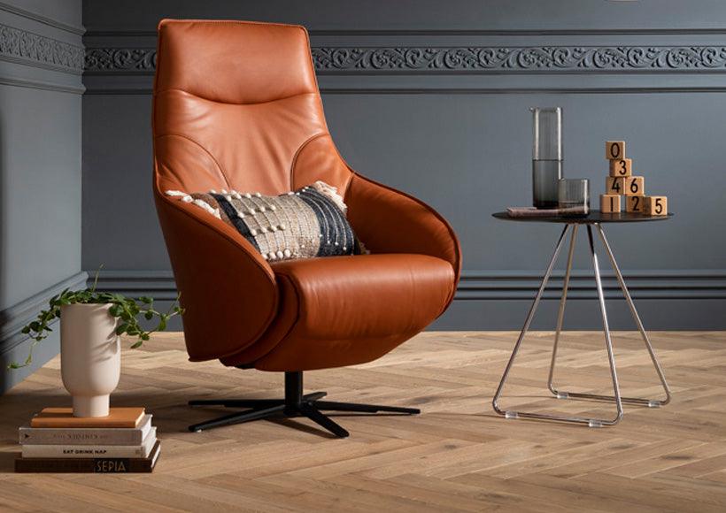 Auf Wunsch auch in Stoff oder anderen Lederfarben lieferbar, inklusive alternativer Fuß- und Gestellvarianten.