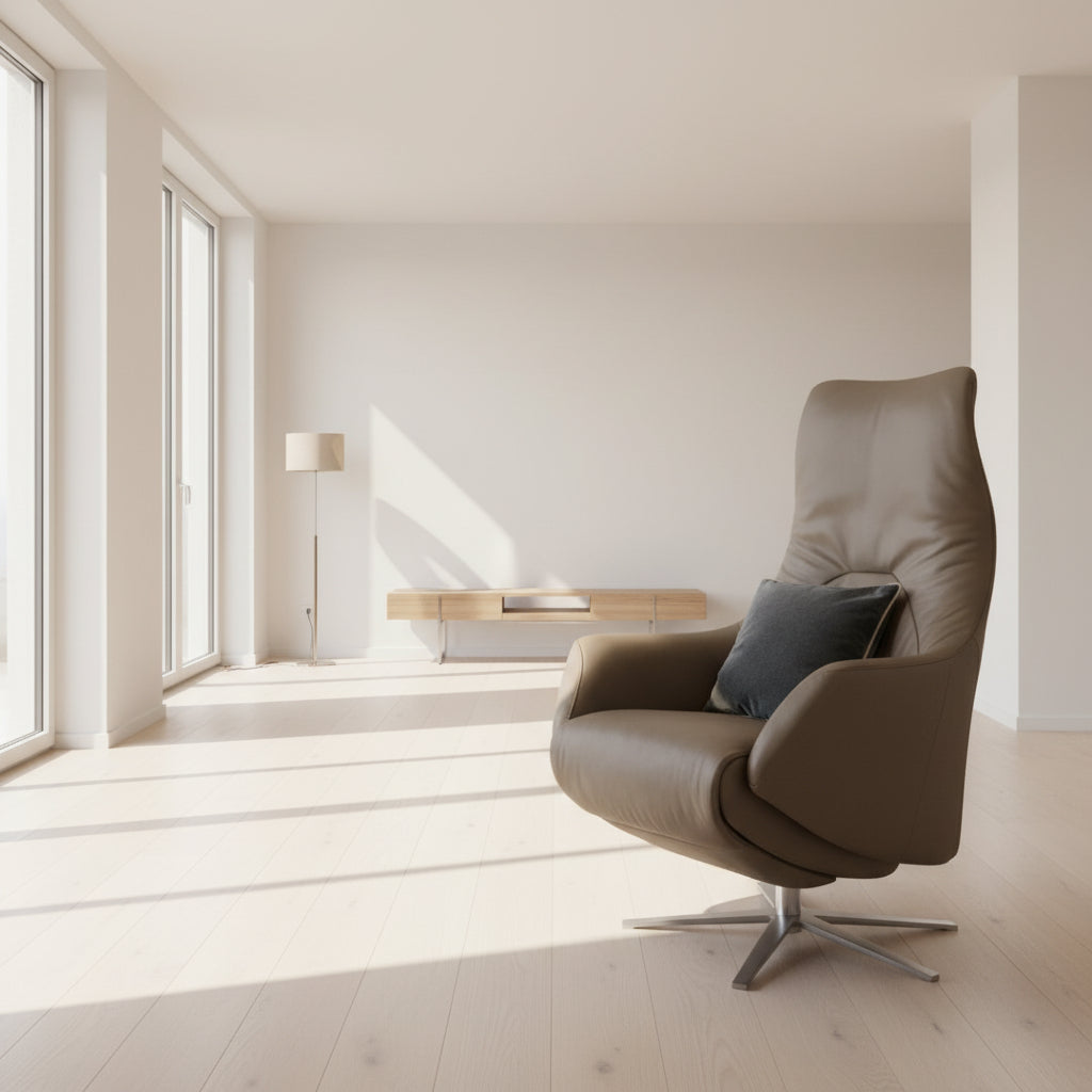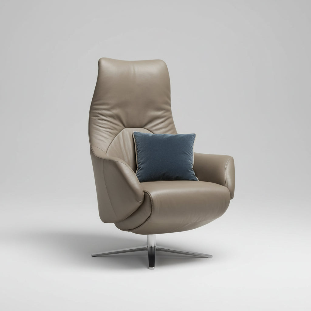 Eleganz trifft Ergonomie: Der AERA Signa 165 kombiniert einen hohen Rücken mit akkumotorischer Verstellung bis in die Herz-Waage-Position für spürbare Entlastung von Herz und Kreislauf. Das manuell verstellbare Nackenteil (Top-Swing) unterstützt Kopf und Nacken genau dort, wo du es brauchst. Auf dem 5-Stern-Fuß „Fuß 32“ in Schwarz dreht sich der Sessel leicht und steht dabei stabil – ideal für Lesezeit, Streaming oder Powernap.
