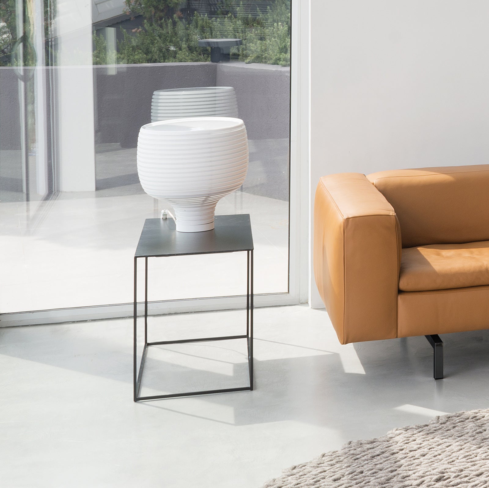 JORI Ascot JR-t938 Beistelltisch mit Metallgestell schwarz und Vegetalia-Sattelleder-Platte vor Fensterfron