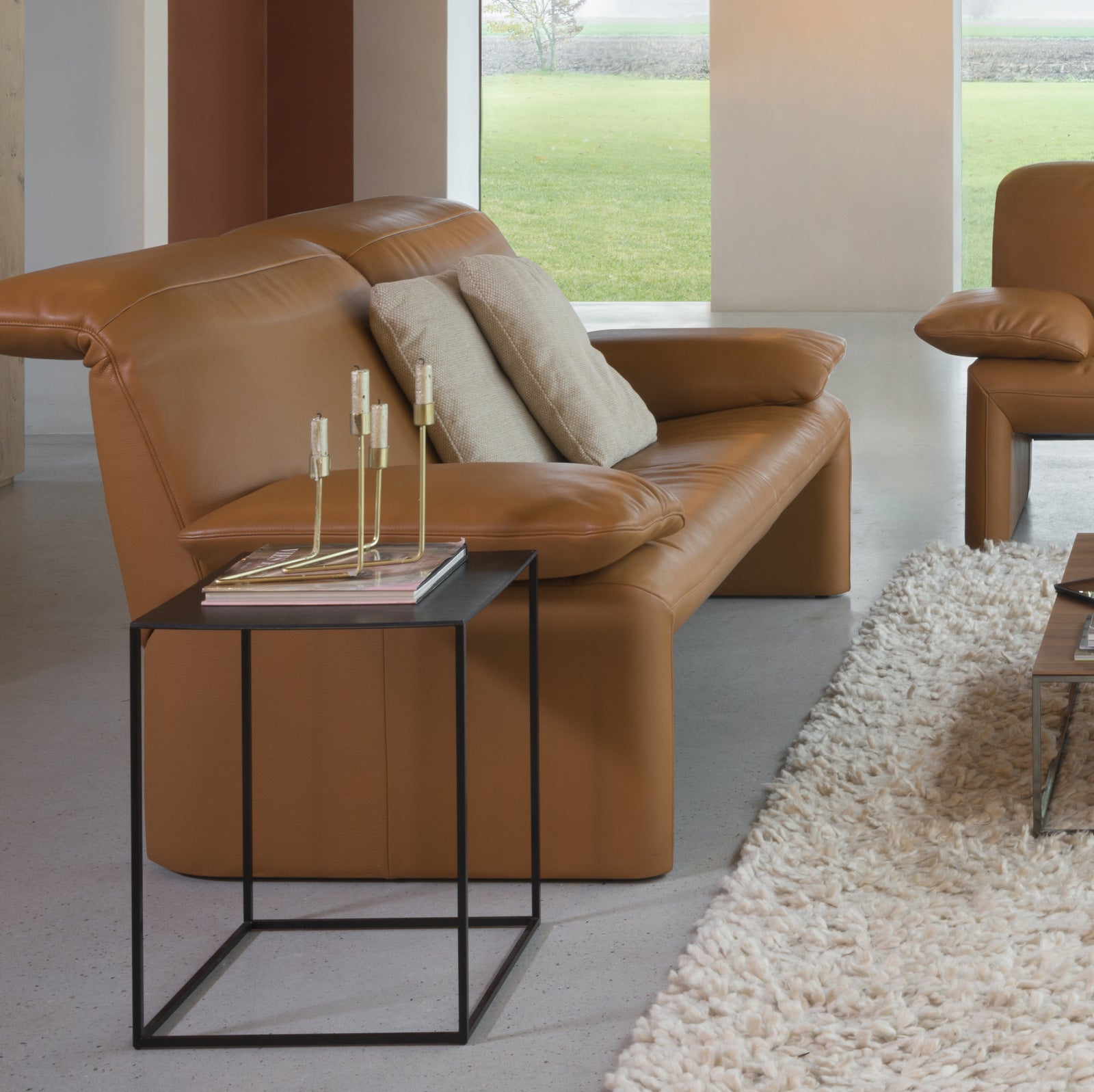 Rechteckiger JORI Ascot JR-t938 neben dem Sofa, Metallgestell schwarz, Sattelleder-Platte black