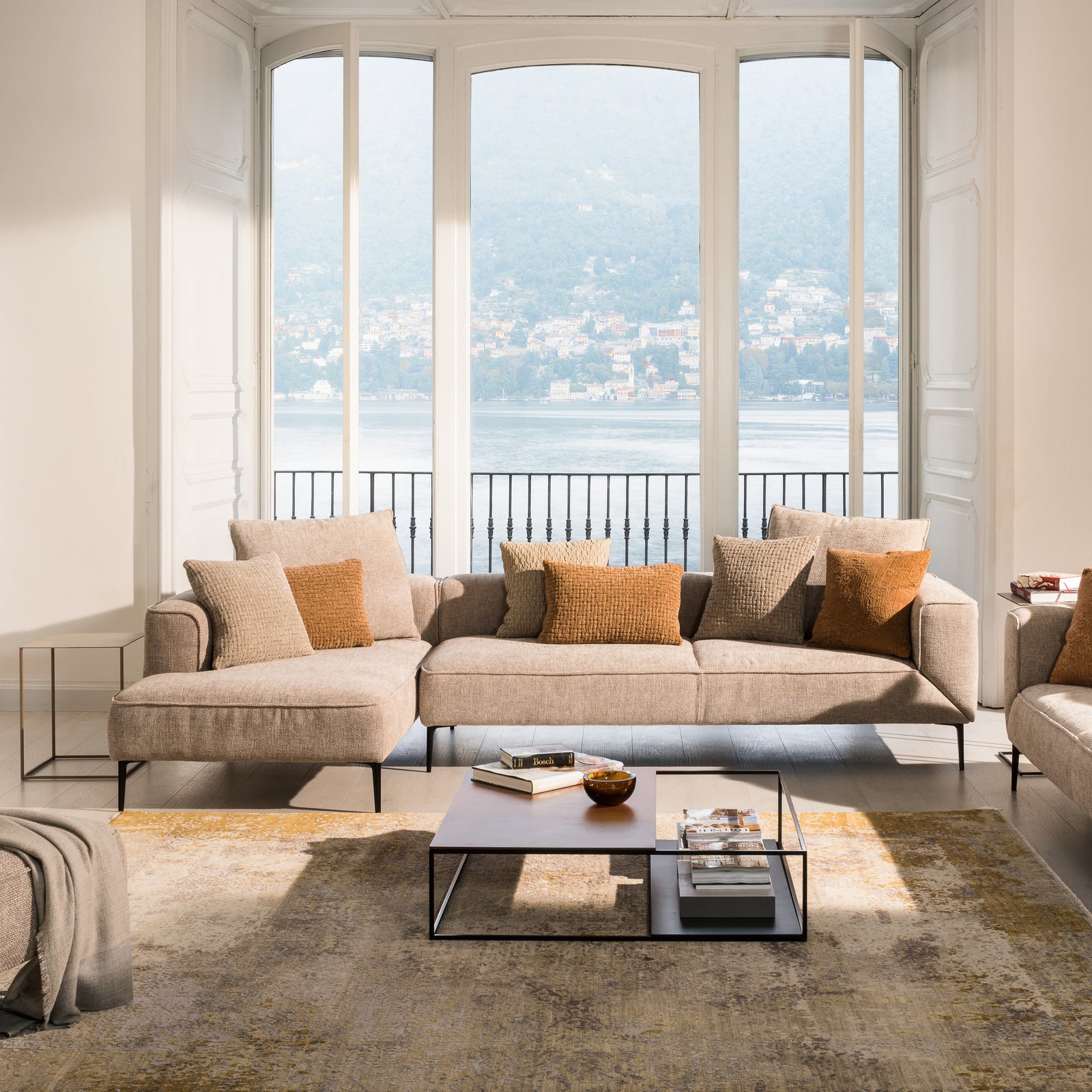 Der elegante Look des Longueville Landscape verbindet belgische Handwerkskunst mit italienischem Flair. Die fein geformten Eckbeine und die diskreten Akzentnähte verleihen diesem Modell eine edle und zugleich lässige Eleganz. Bei einem unerwarteten Besuch von Freunden sorgt die drehbare Armlehne für eine zusätzliche Sitzmöglichkeit – perfekt, um flexibel auf Gäste zu reagieren. Kurz gesagt: Das Sofa vereint Sitzkomfort und Funktionalität auf stilvolle Weise.