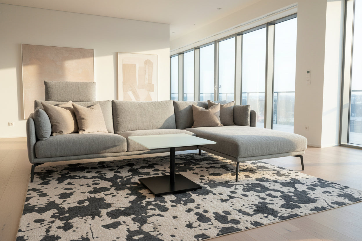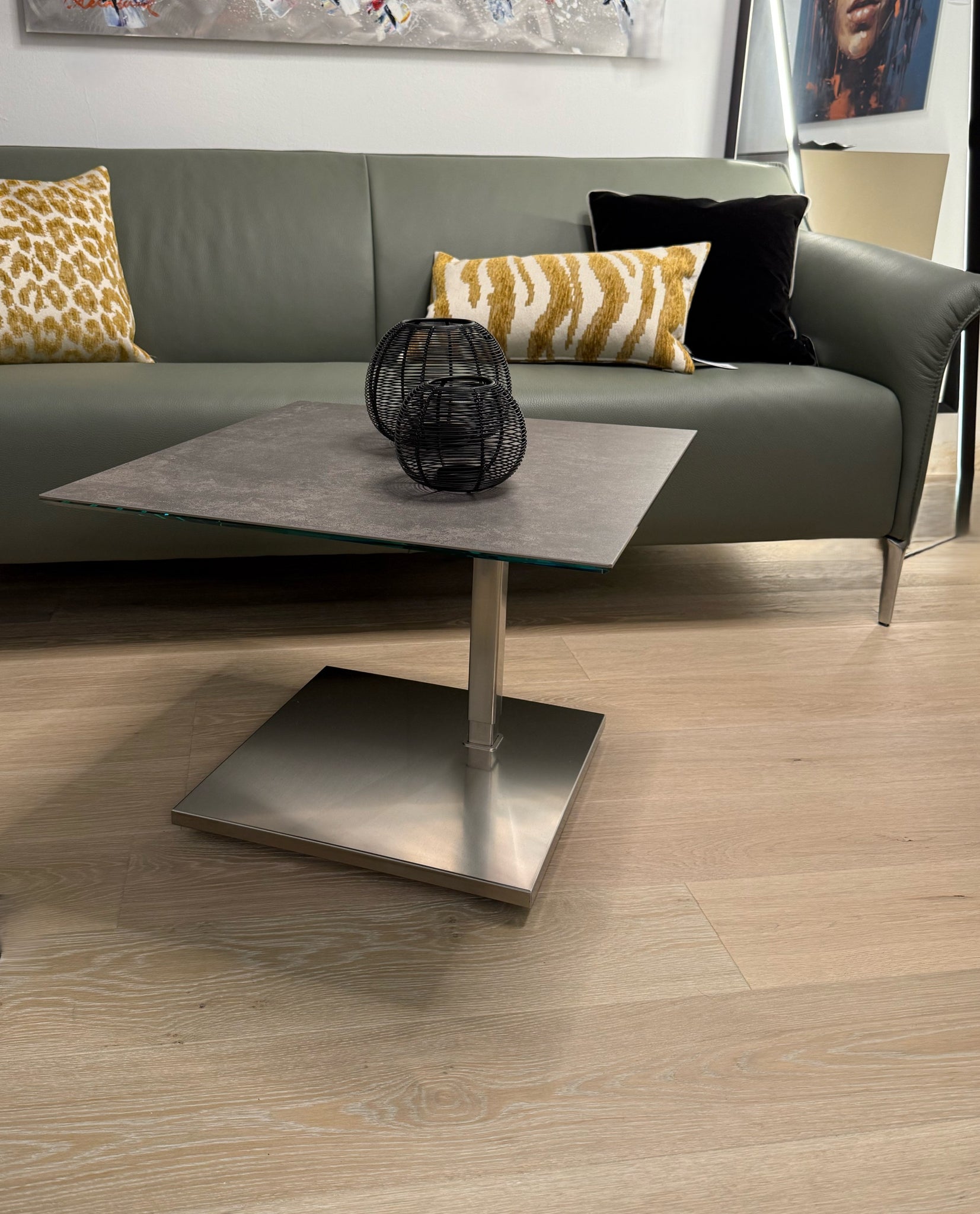 Beistelltisch 60×60 cm – Wohnsituation mit Keramikplatte und Edelstahlgestell passend für Duett K526 & Kolo K726 (DUO/pOp)