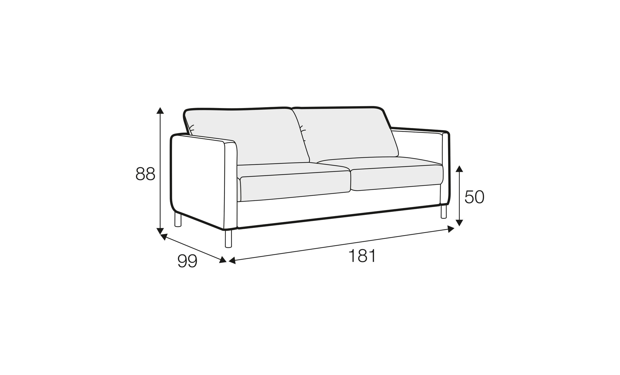 Maße: ca. B 181 × T 99 × H 88 cm, Sitzhöhe 50 cm, Sitztiefe 55 cm.