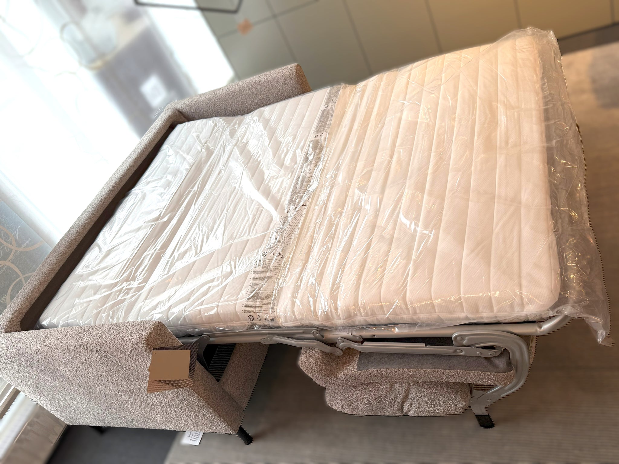 Dieses Felix vereint klare Linien mit echter Gästebett‑Tauglichkeit – und steht als Ausstellungsstück im Neuzustand bereit. Wir geben es zum einmaligen Sonderpreis ab. Grund: Der Hersteller hat eine Woche nach unserer Lieferung angekündigt, den Stoff Poppy zum Jahresende auslaufen zu lassen – bei so einem schönen, griffigen Chenille‑Gewebe eigentlich eine Schande.